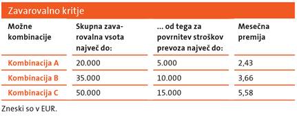 Ob sklenitvi zavarovanja lahko izbirate med tremi kombinacijami zavarovalnih vsot in premij.